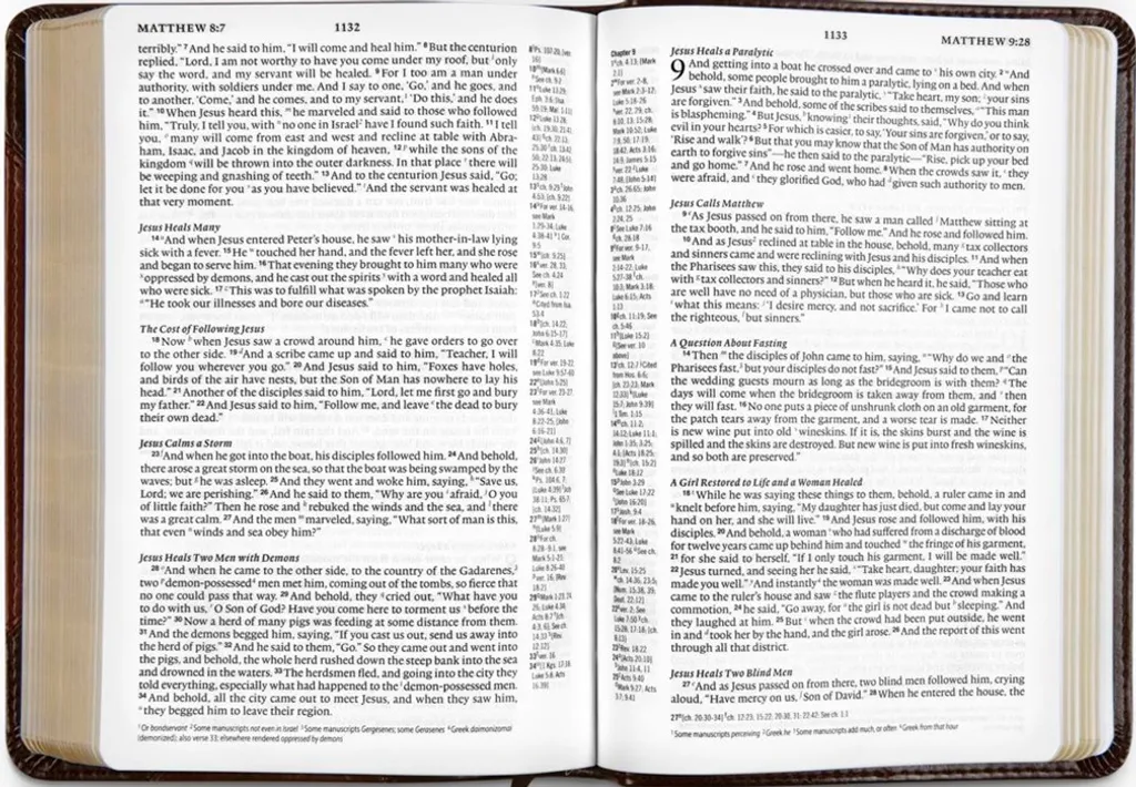 The ESV Personal Reference Bible is a compact reference Bible in a single-column setting. Building on the original Personal Size Reference Bible, this new edition has been completely redesigned. The layout now utilizes line matching, a design method which significantly improves readability on Bible paper. Also featuring a concordance and a full set of cross-references, the Personal Reference Bible is the ideal portable reference Bible.